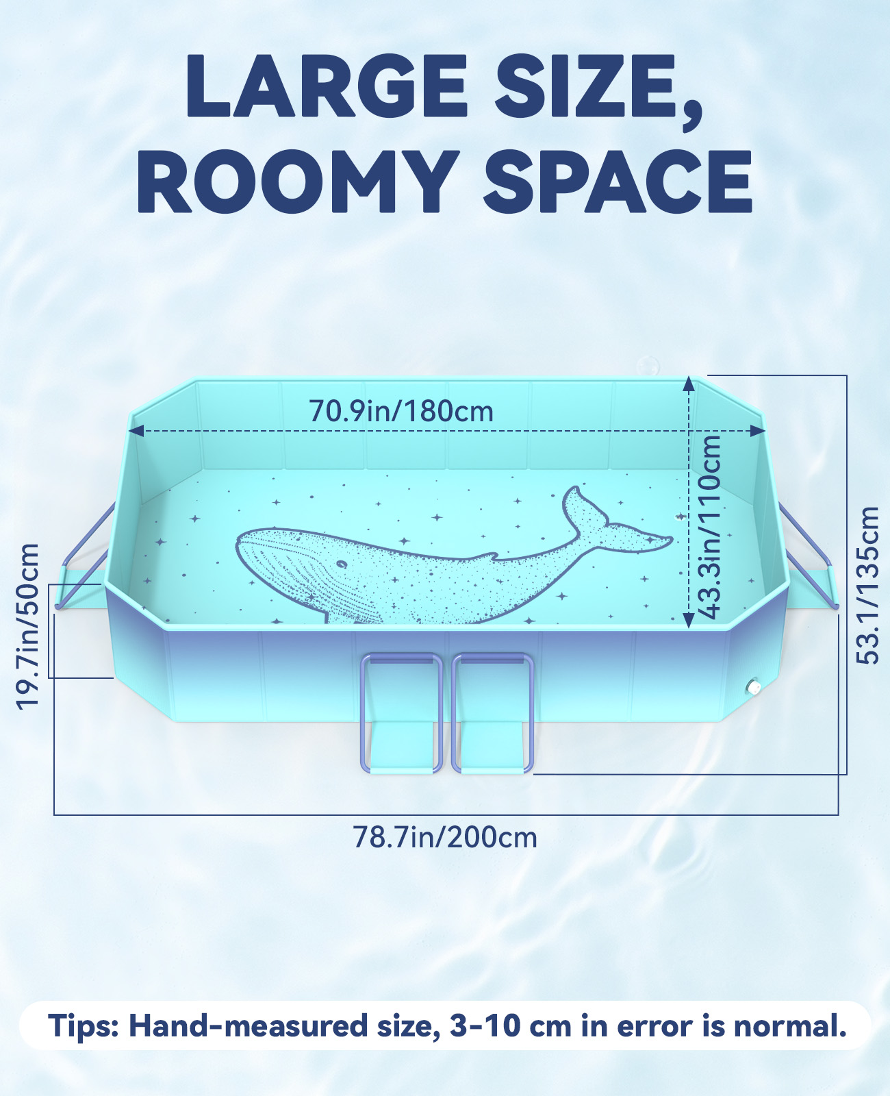 HeySplash Foldable Pool, Non-Inflatable Swimming Pool with Rigid Puncture-Proof Hard Composite Board, Kiddie Pool Outdoor Pool, Adults & Kids Pool for Backyard Garden Dog Pool 78″×53″×19″, Blue Whale